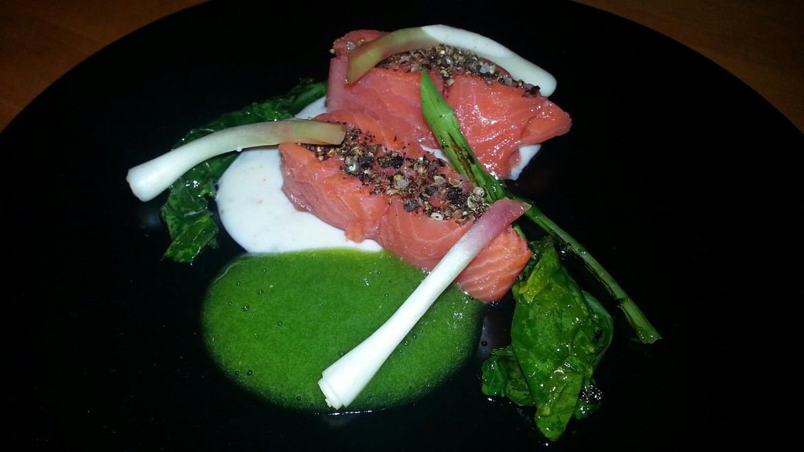 Pickled ramps, ramp puree, charred rapini, citrus crème fraîche