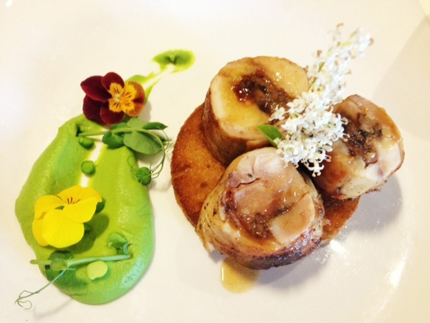 "Sous vide" Rabbit Saddle (activa), with pea/mint purée